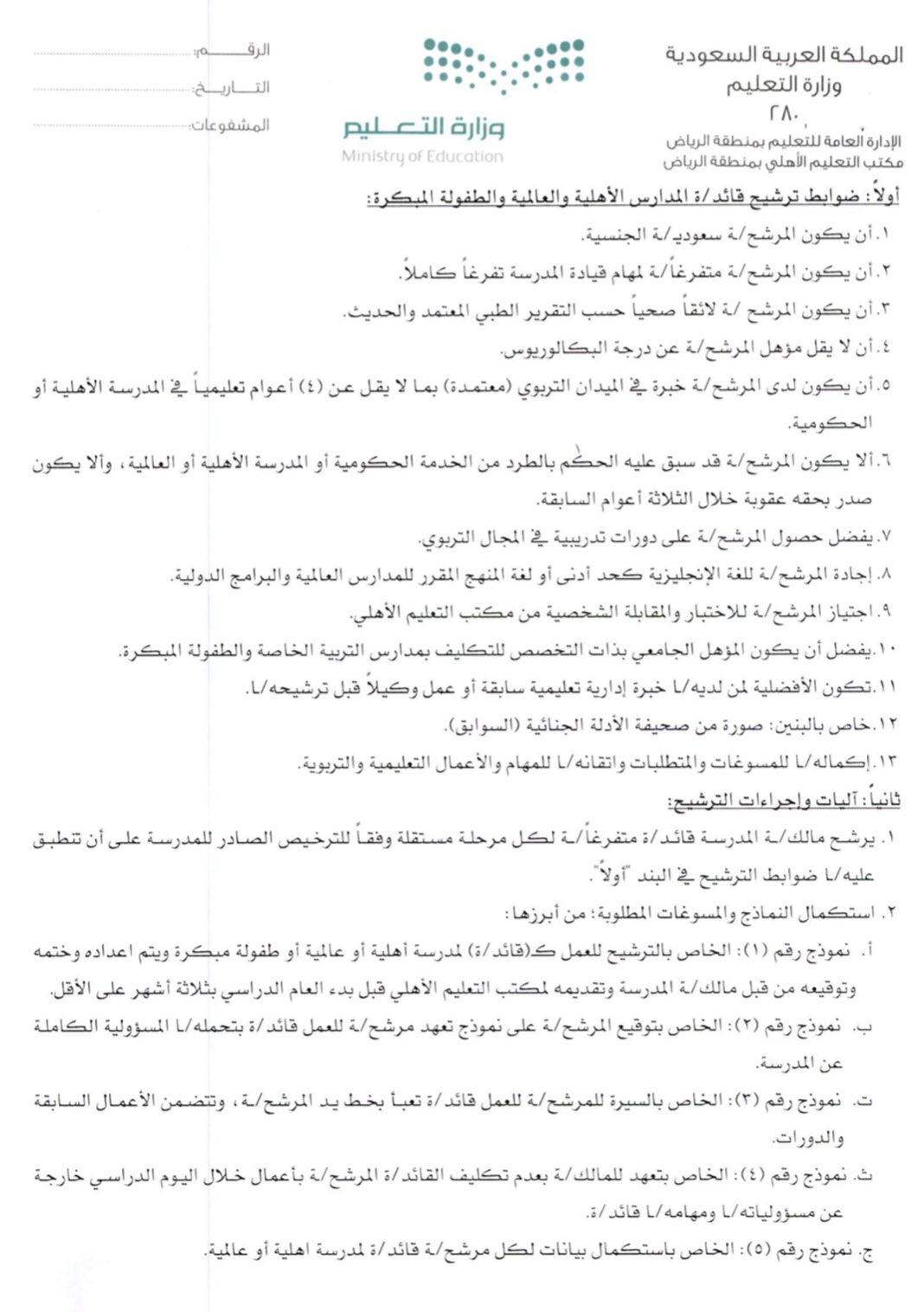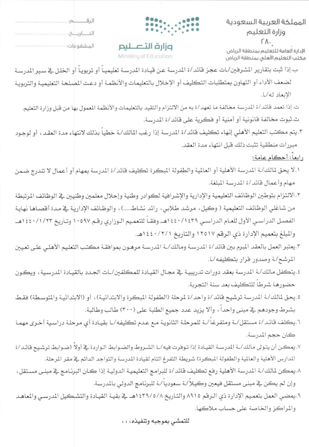 ملتقى معلمي السعودية No Twitter تعميم للمدارس الأهلية والعالمية والمتضمن آلية تكليف قائد ة المدرسة الأهلية والعالمية والضوابط والأحكام وتشمل التدرج الزمني في إنهاء التكليف لقادة المدارس الأهلية والعالمية ممن على ملاك الوزارة