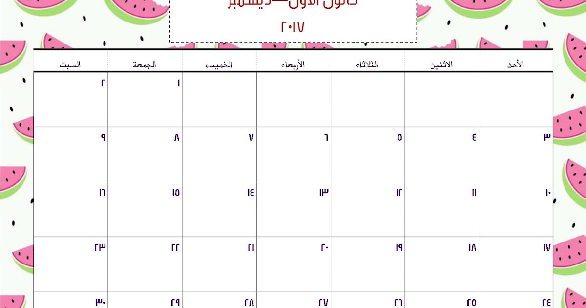 تصميم تقويم شهر كانون الأول ديسمبر 2017 مدونة أسماء