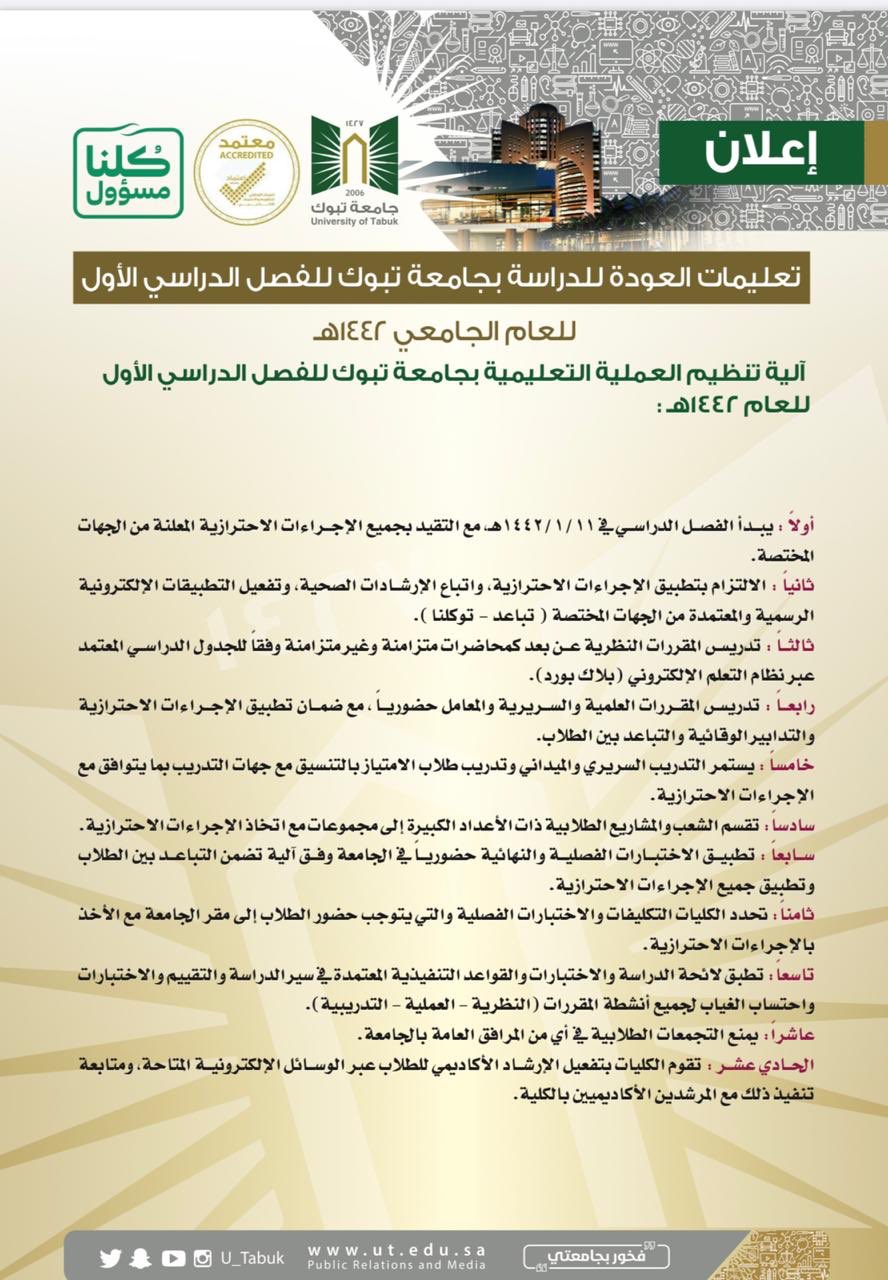 جامعة تبوك On Twitter اعلان آلية تنظيم العملية التعليمية ب جامعة تبوك للفصل الدراسي الأول للعام الجامعي ١٤٤٢هـ وذلك حسب المرفق U Tabuk Https T Co 6vlh4jw6n7