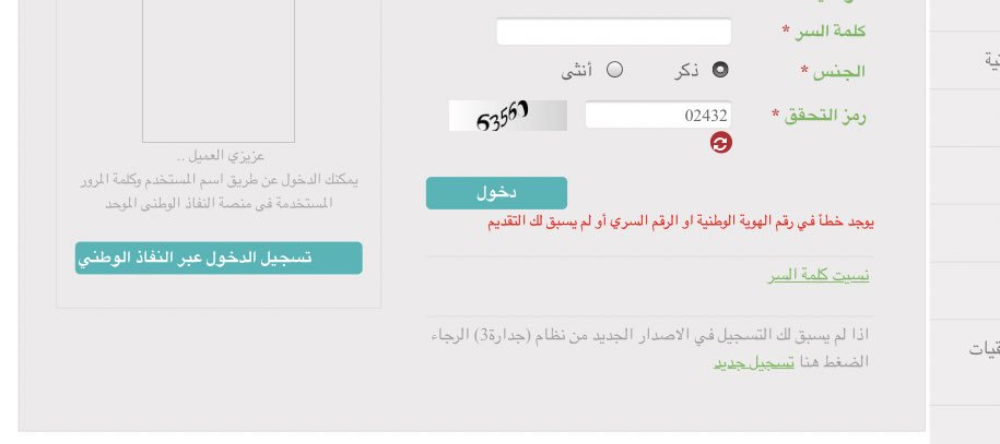 رسالة خطأ في الهوية أو الرقم السري يربك متقدمي جدارة