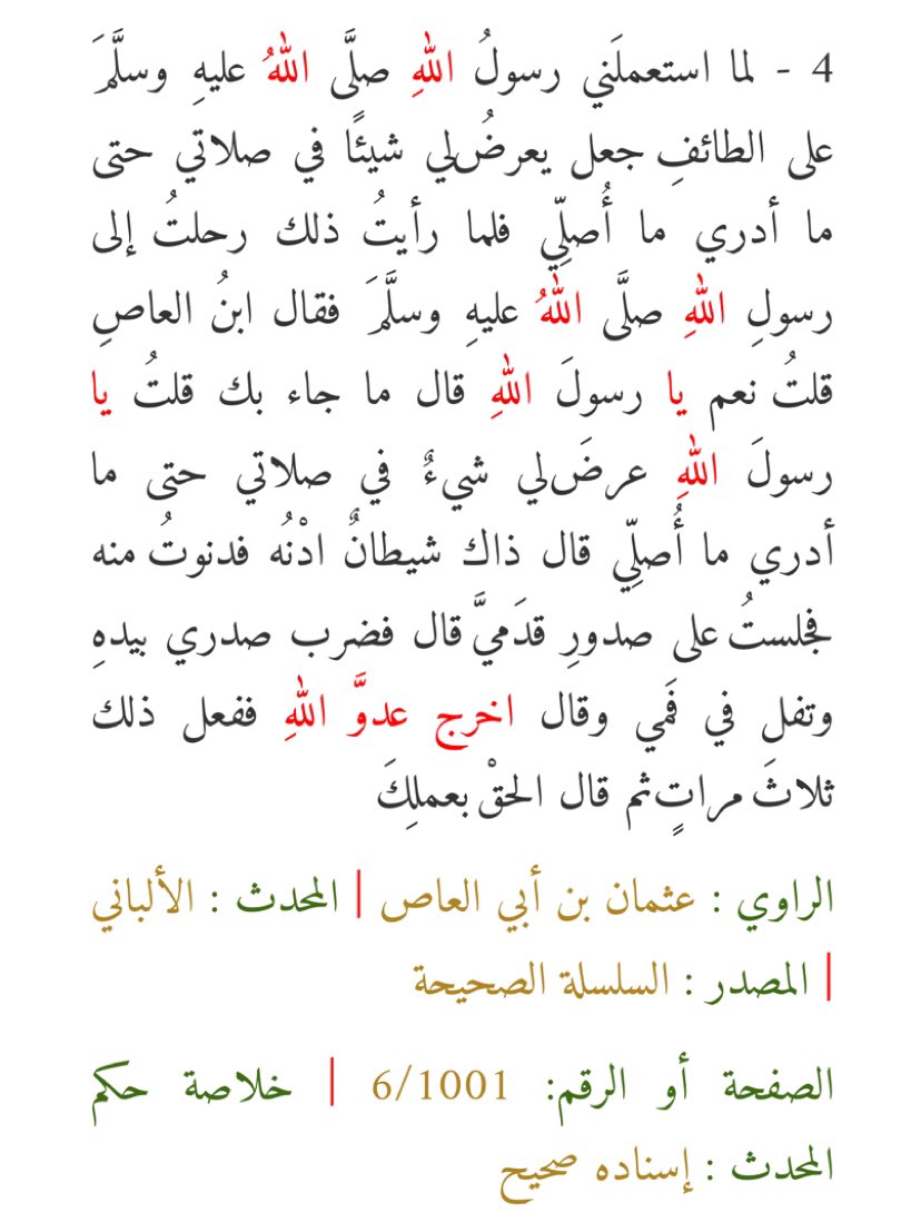 الأحاديث الصحيحة On Twitter قال ذاك شيطان اد ن ه فدنوت منه فجلست على صدور قدمي قال فضرب صدري بيده وتفل في فمي وقال اخرج عدو الله الرقية الشرعية Https T Co Epzfpn08la