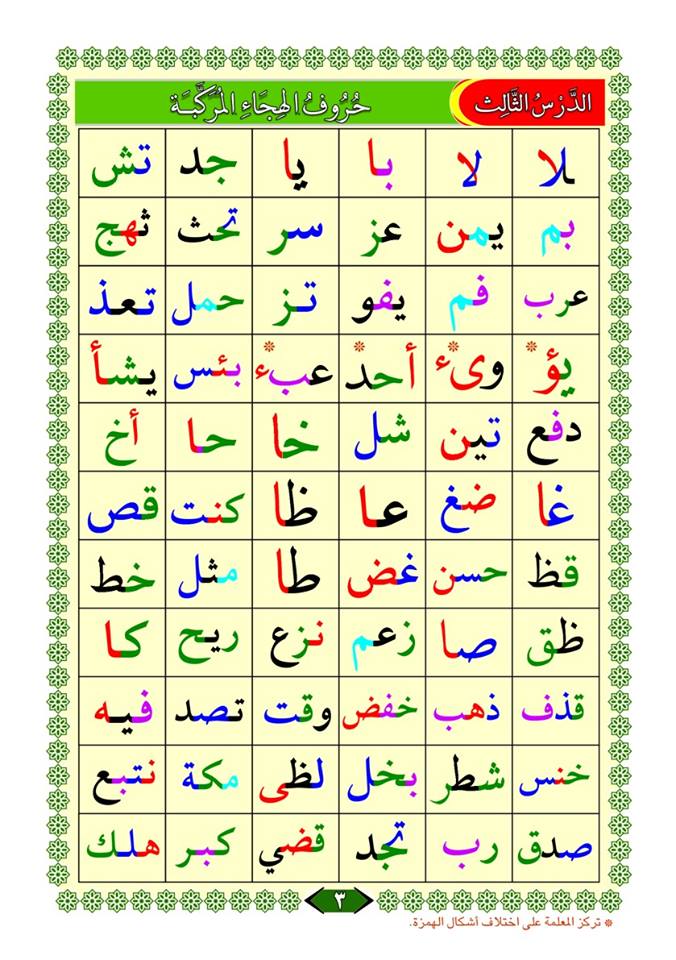 فى رياض الجنة الدرس الثالث حروف الهجاء المركبة