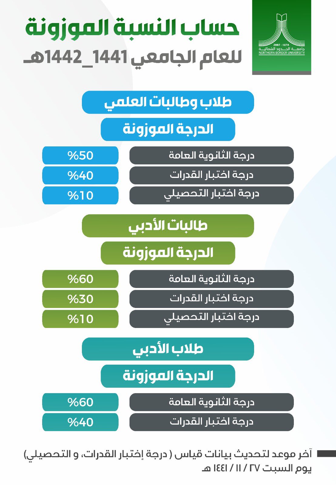 عمادة القبول والتسجيل On Twitter تعلن عمادة القبول والتسجيل اعداد المتقدمين والمقبولين للعام الجامعي ١٤٤٢ ١٤٤١ هـ وأقل نسبة موزونة تم ترشيحها للقبول بكل كلية جامعة الحدود الشمالية Https T Co Dpqp8ioazj