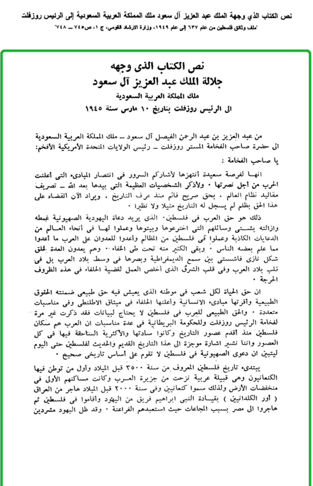 الشريف يوسف الحارثي On Twitter رسالة الملك عبدالعزيز رحمه الله الى الرئيس الأمريكي روزفلت بخصوص فلسطين