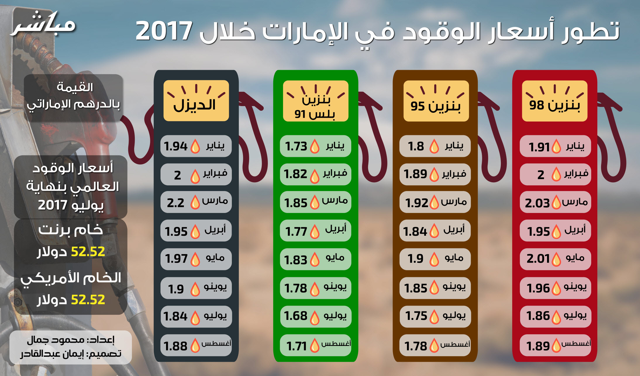 إنفوجراف تطور أسعار الوقود في الإمارات خلال 2017 معلومات مباشر
