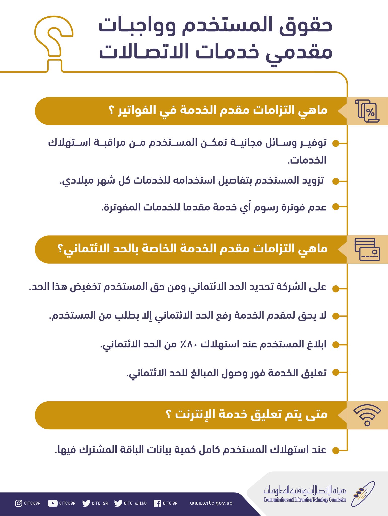 هيئة الاتصالات وتقنية المعلومات On Twitter ماهي التزامات مقدم الخدمة في الفواتير و الحد الائتماني ومتى يجب على مقدم الخدمة تعليق خدمة الإنترنت المتنقل