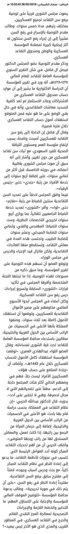 جريدة الرياض بدلات العسكريين ما تنفع عند التقاعد