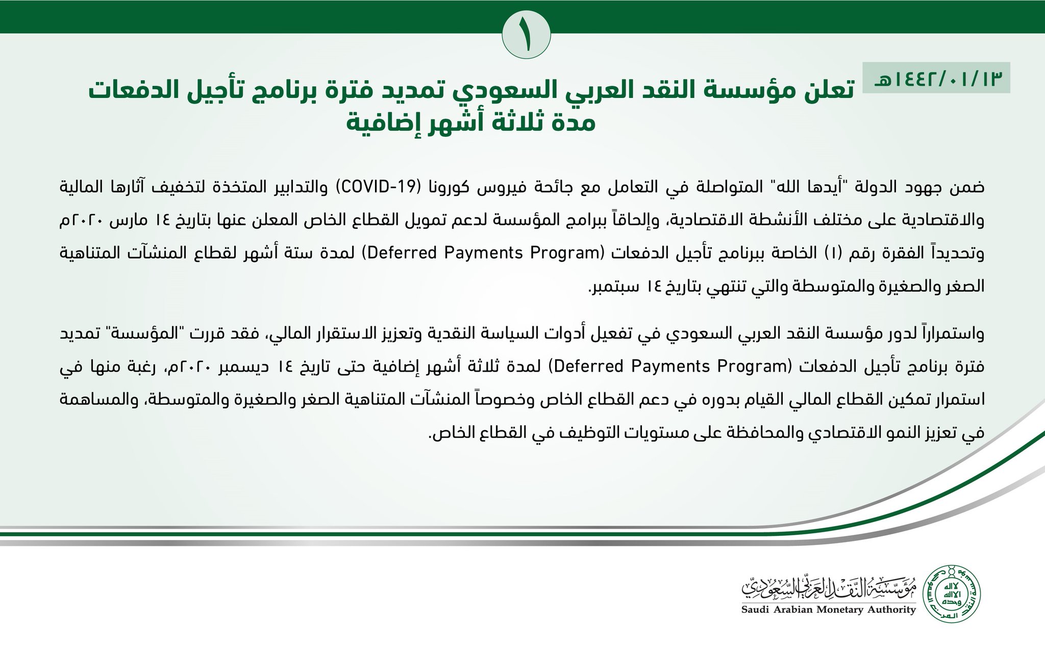 Sama مؤسسة النقد العربي السعودي On Twitter تعلن مؤسسة النقد العربي السعودي تمديد فترة برنامج تأجيل الدفعات مدة ثلاثة أشهر إضافية Https T Co Zrjjihddsu Sama Https T Co Yoroatwwab